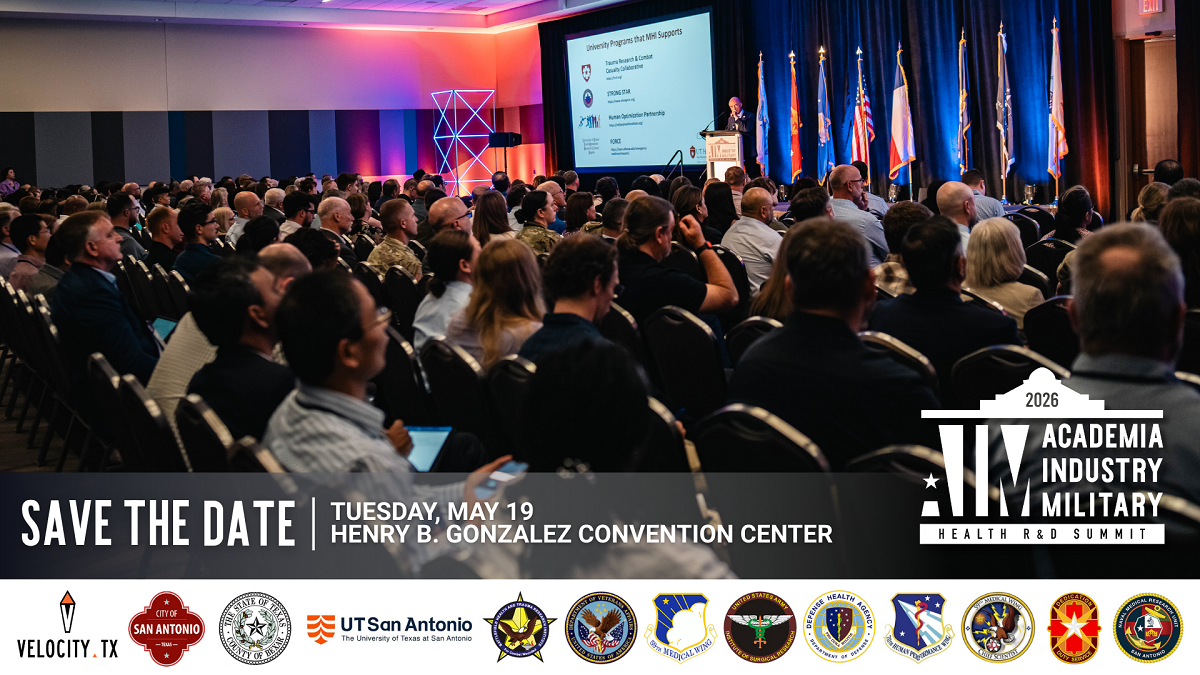 Join us this June at the Henry B. Gonzalez Convention Center for the AIM Health R&D Summit, a collaborative event that will bring together some of the top minds from academia, industry, and the military to facilitate cross-sector partnership in the development of life-saving battlefield technologies.